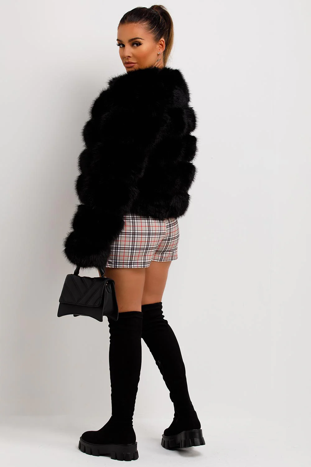 Faux fur coat. This fur bubble coat is going to earn you all the style points in this new season. Featuring luxury faux fur bubble coat with hook fastening and side pockets. This fur coat is vegan friendly. Style this faux fur bubble coat with any outfit to complete the cute cosy look. This faux fur coat is also available in different colours.