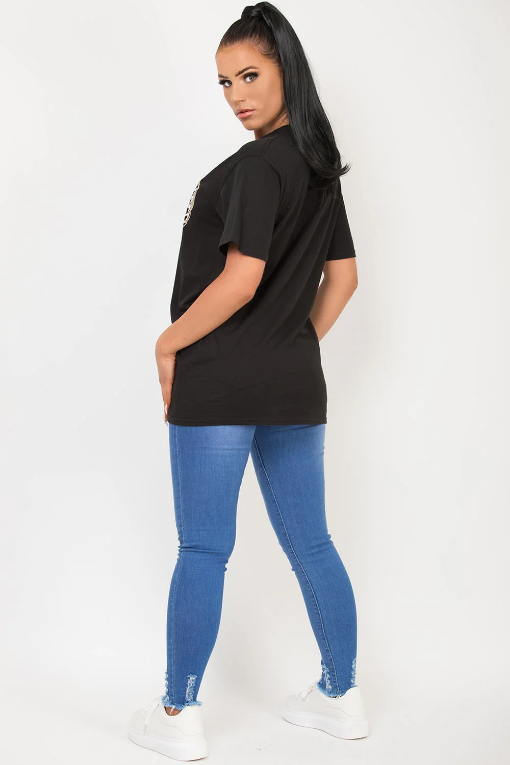 Oversized t shirt with couture slogan. This t shirt is perfect to complete any casual look for them off duty days. Featuring oversized tee shirt with short sleeves round neckline and california print. Wear it with our high waisted jeans to complete the look. Also available in other colours.