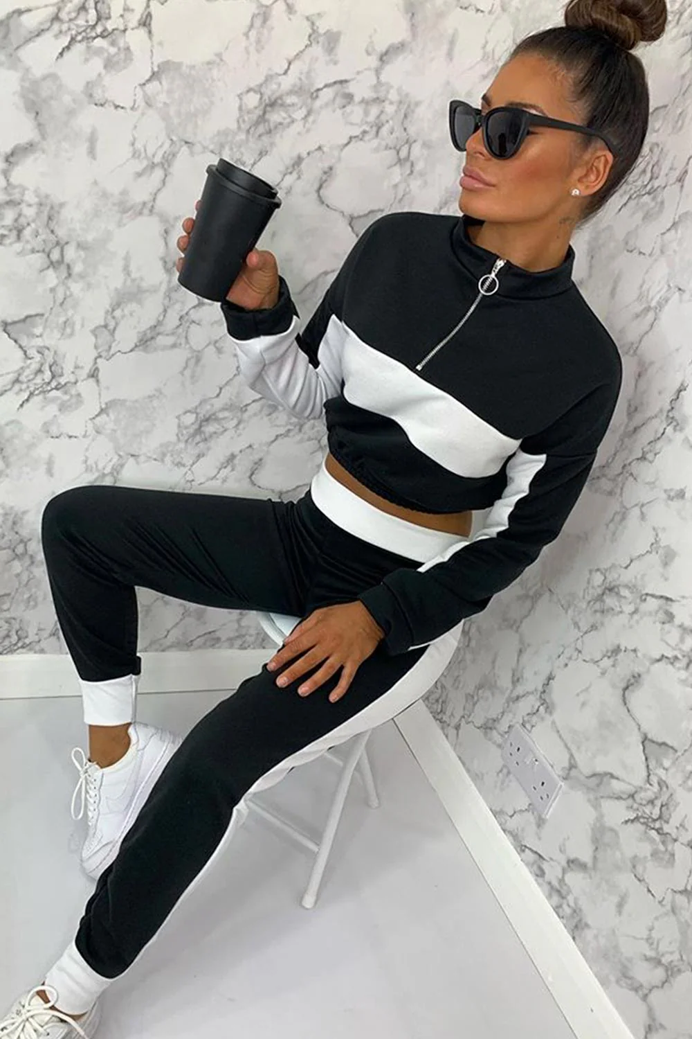 This lounge set is essential for this season. This loungewear co ord set features cropped length zip front top and elasticated waist cuff bottom joggers. Style it with our chunky trainers for perfect off duty looks. Available in White, Black and Grey.