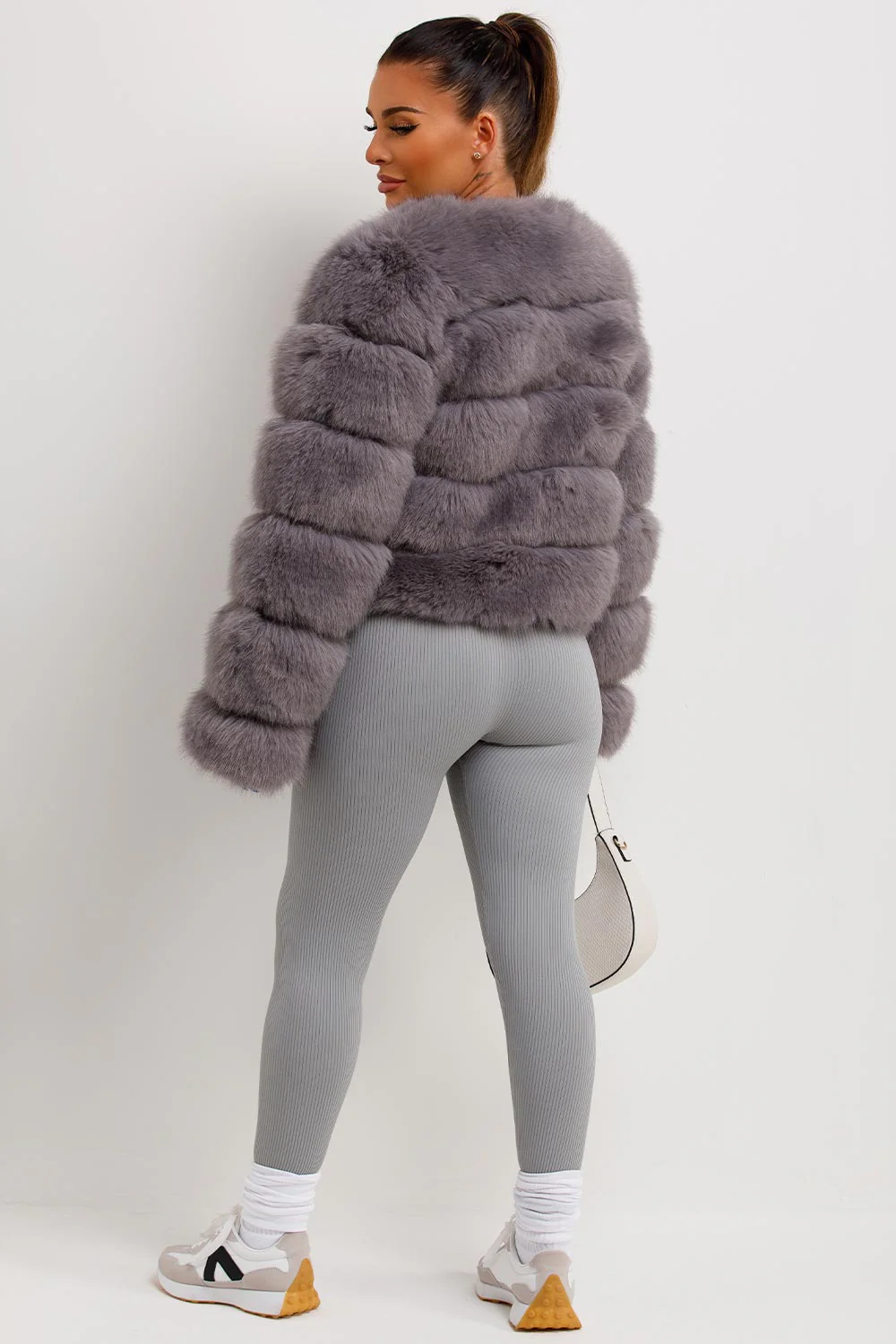 Faux fur coat. This fur bubble coat is going to earn you all the style points in this new season. Featuring luxury faux fur bubble coat with hook fastening and side pockets. This fur coat is vegan friendly. Style this faux fur bubble coat with any outfit to complete the cute cosy look. This faux fur coat is also available in different colours.