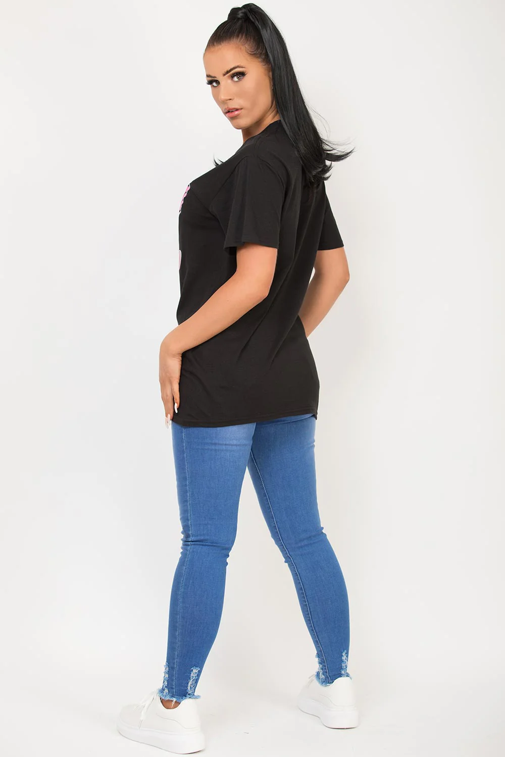 Oversized t shirt with never enough heart graphic print. This t shirt is perfect to complete any casual look for them off duty days. Featuring oversized tee shirt with short sleeves round neckline and never enough heart graphic print. Wear it with our high waisted jeans to complete the look. Also available in other colours.