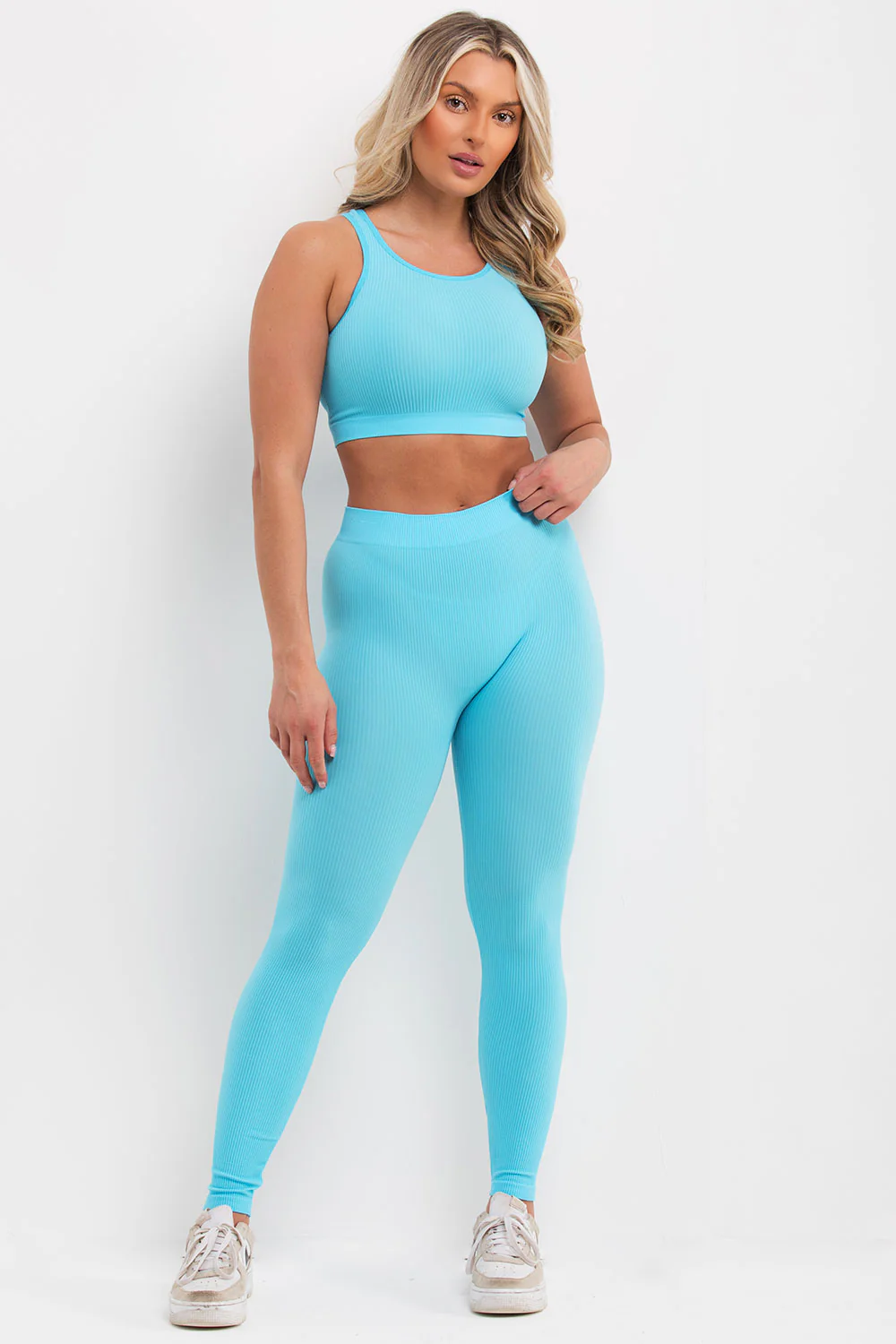 Ribbed Leggings And Crop Top Co Ord Set Sky Blue