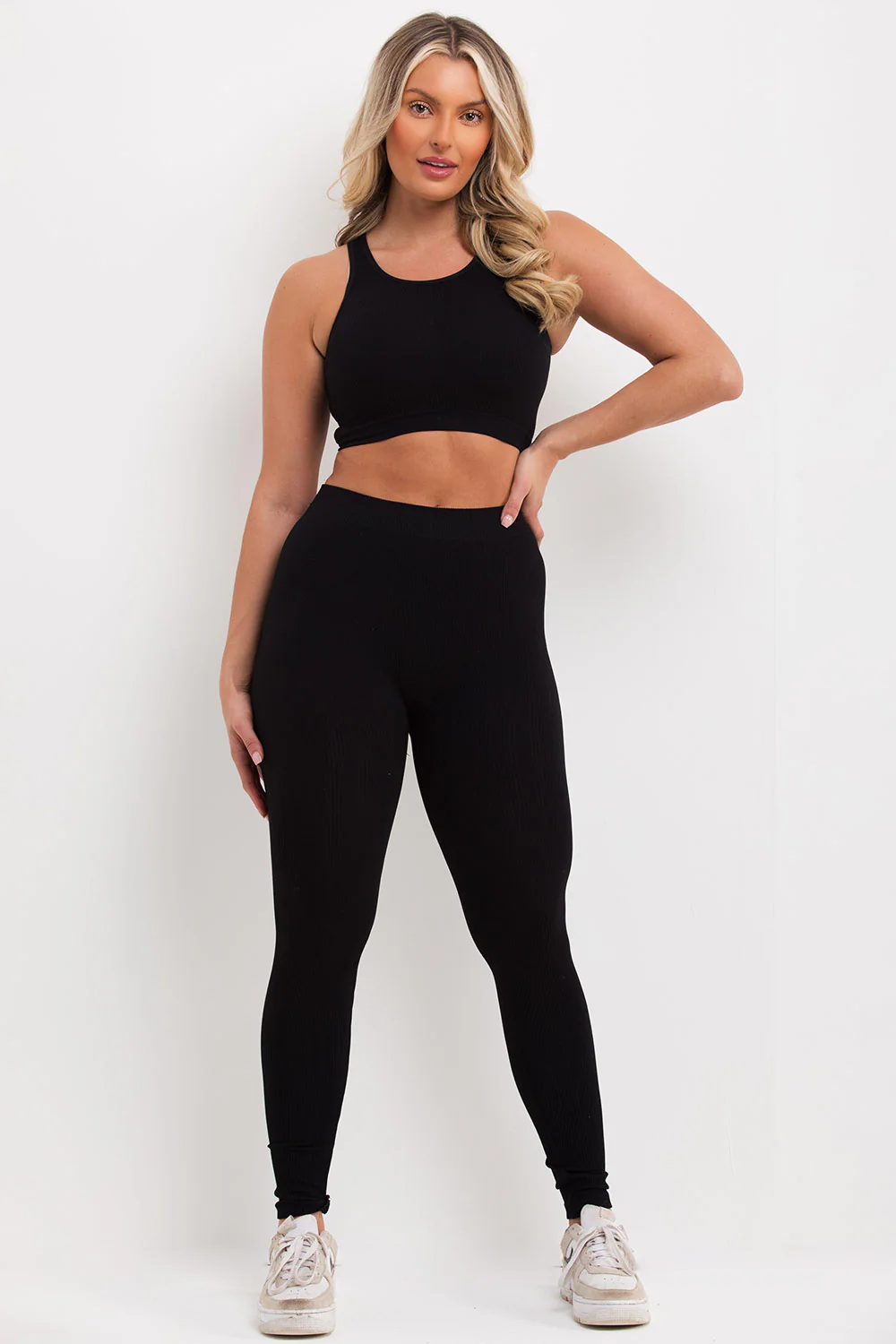 Ribbed Leggings And Crop Top Co Ord Set Black
