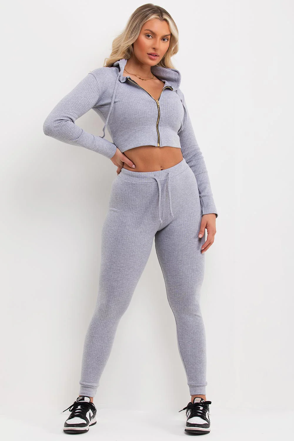 Tracksuit co ord. This co ord is perfect for them off duty days when you are out and about. Featuring ribbed crop hooded zipper and matching leggings with elasticated waist. Style it with fresh kicks to complete the look we are loving.
