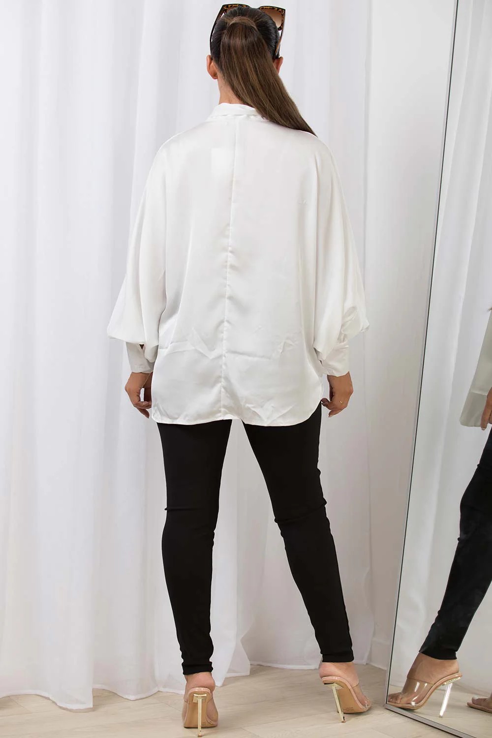 Pussy bow blouse with long sleeves. This long sleeve blouse will get you ready for weekend or work for this new season. Featuring lush satin fabric long sleeves pussbow tie detail. Style it with our high waisted leggings to complete the look we are loving. Also available in Black.